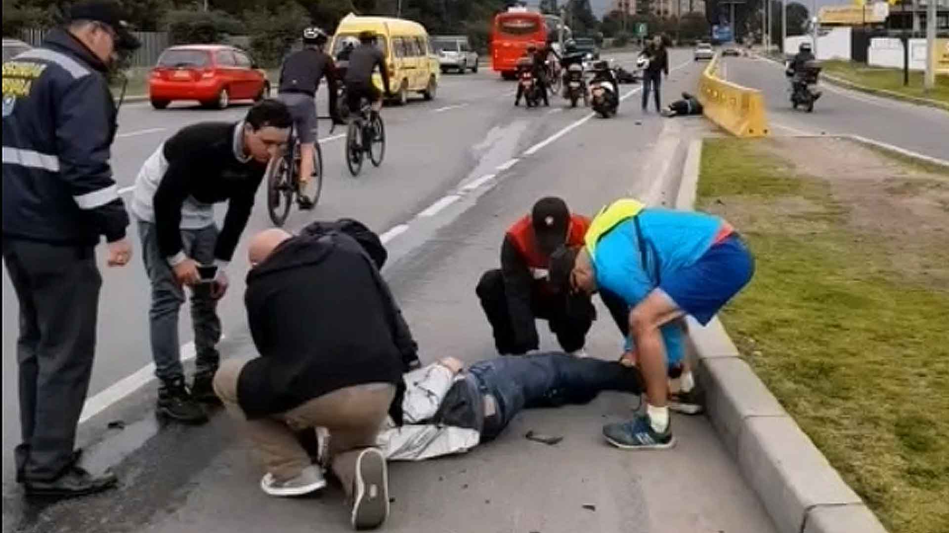 A las 11 de la mañana de hoy domingo 11 de septiembre se presentó un accidente en la vía que conduce del municipio de Cajicá hacia Chía en el que un vehículo fantasma atroppelló a dos ciclistas y un motociclista y se dio a la fuga.