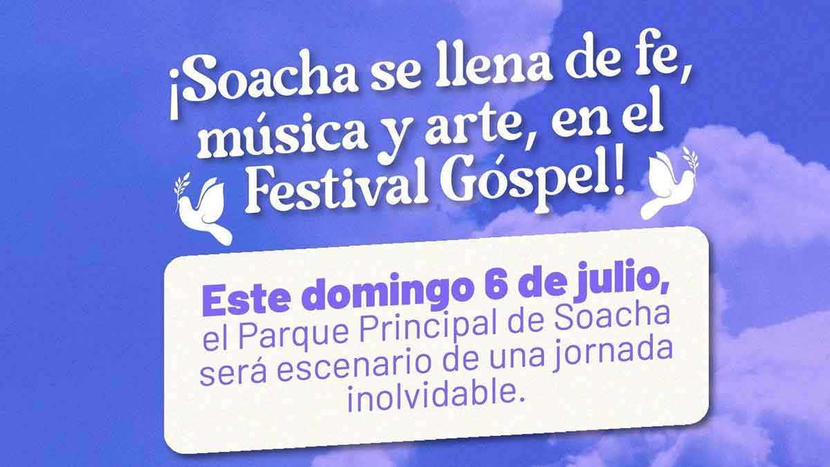 Bajo el liderazgo de la Secretaría de Cultura y Turismo de Soacha, se celebrará este domingo 6 de julio el Festival Góspel 2025, un evento gratuito que reunirá a miles de personas en torno a la música de alabanza y expresión artística. La cita será a partir de las 12:00 m. en el Parque Principal de Soacha, con entrada libre para todo el público.